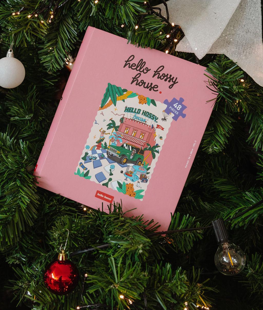 Foncez sur le Puzzle pour enfants, Hello Hossy House. 48 pièces à assembler dès 3 ans. Illustration exclusive, carton recyclé, packaging format livre idéal pour la décoration de la chambre des kids. Cadeau au top pour anniversaire, Noël ou juste pour s'amuser.